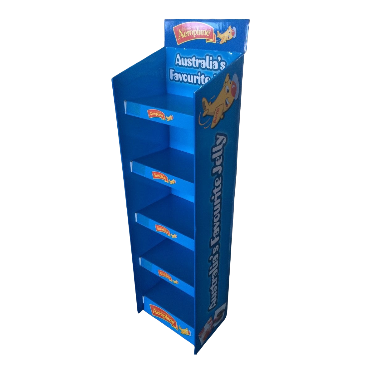 ![]() | Australia Areoplane Food Cardboard Shelf Floor Display Specification: Size: Can be customized Material: 350g CCNB+ B flute Printing Method: Off set full color printing Accessories: Plastic clips Package: Flat Individually Packed/ can be bulk packed in carton; |