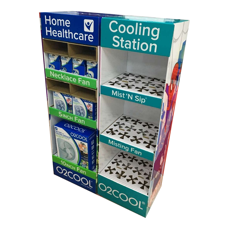 ![]() | Cardboard Mini Fans Neck Fans Floor Display Stand Specification: Size: Can be customized Material: 350g CCNB+ B flute Printing Method: Off set full color printing Package: Flat Individually Packed |
