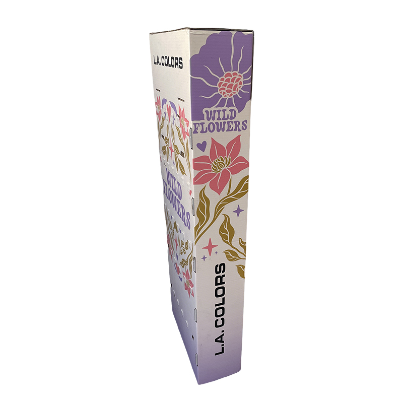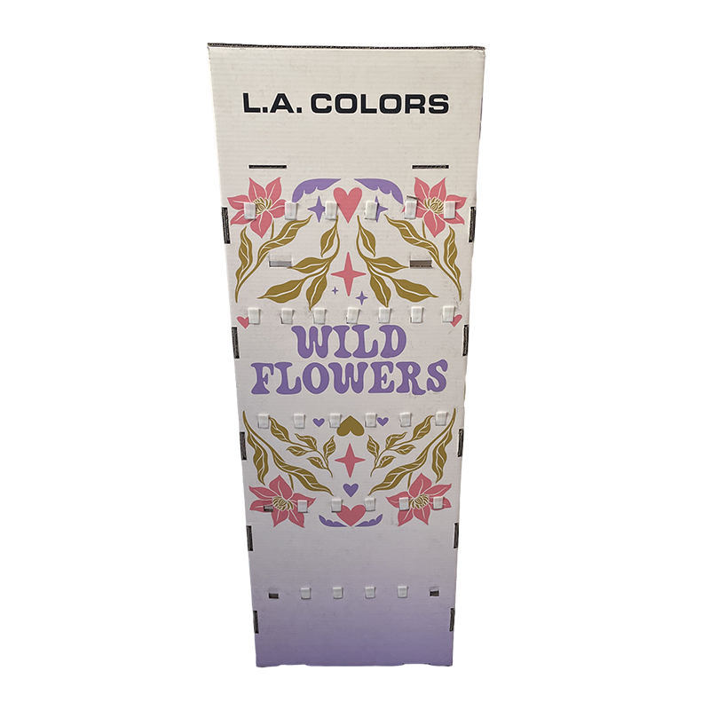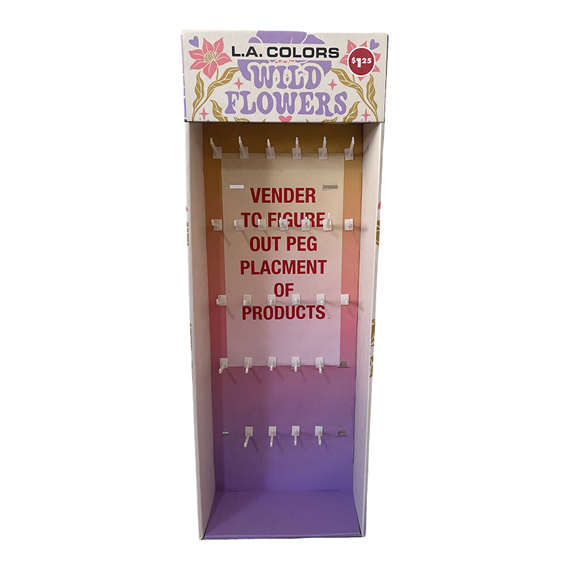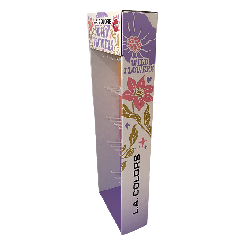 ![]() | Cosmetic Hook display stand Specification: Size: Can be customized Material: 350g CCNB+ B flute Printing Method: Off set full color printing Accessories: Plastic hooks Package: Flat Individually Packed |