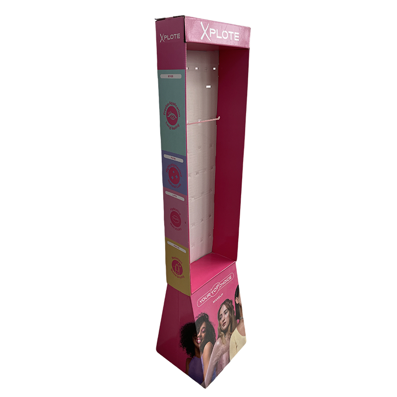 ![]() | Makeup Hook Display Specification: Size: Can be customized Material: 350g CCNB+ B flute Printing Method: Off set full color printing Accessories: Plastic hooks Package: Flat Individually Packed/ Bulk packed |