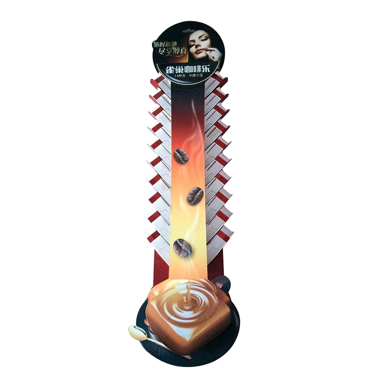 ![]() | Coffee Hangsell Display Specification: Size: Can be customized Material: 350g CCNB+ B flute/E flute Printing Method: Off set full color printing Accessories: Plastic Hooks Package: Flat Individually Packed/ Fully assembled with product; |